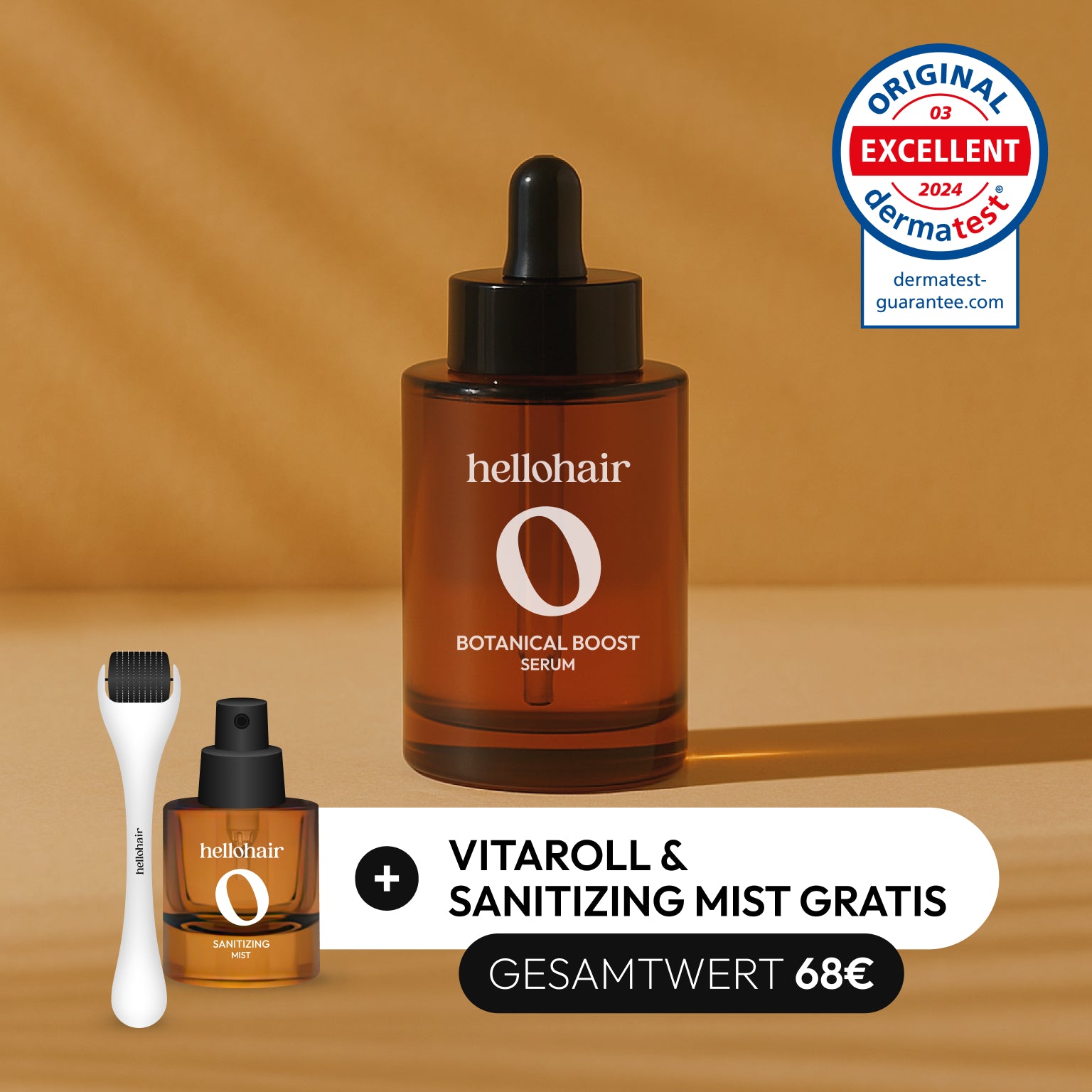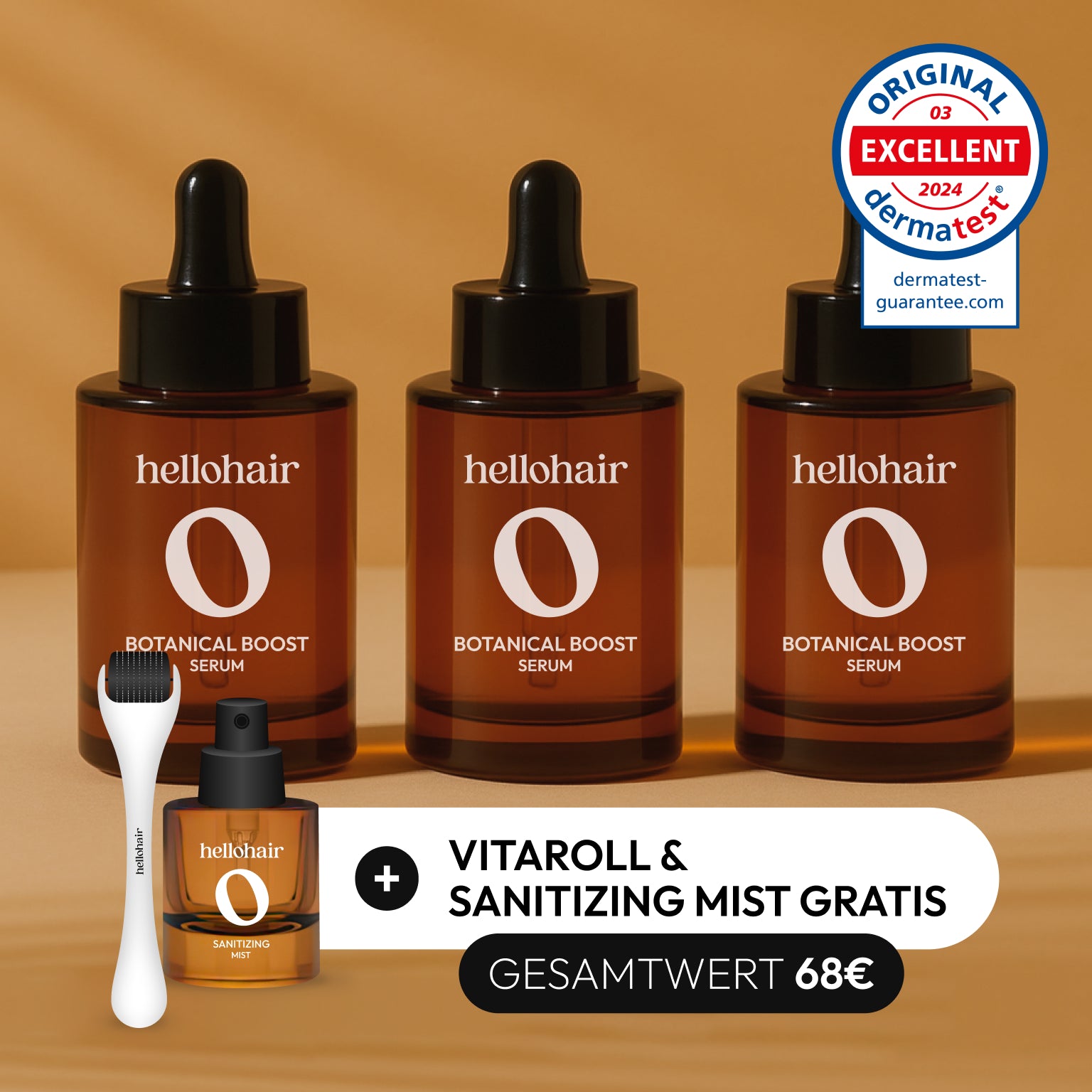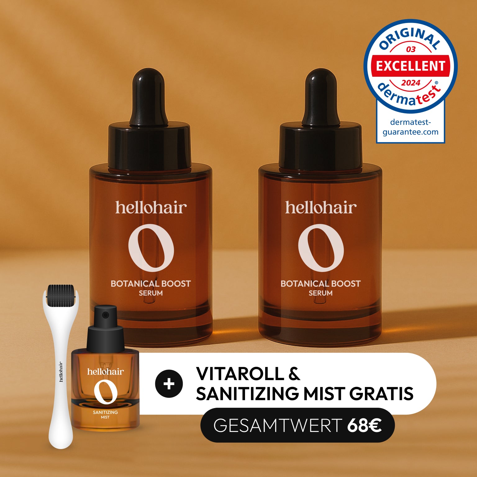 Grundsätzlich werden die besten Ergebnisse erzielt, wenn der Haarausfall ganzheitlich behandelt wird. Das Wirkungskonzept von hellohair umfasst die Sicherstellung einer optimalen Nährstoffversorgung, Dermaroller-Anwendungen sowie speziell abgestimmte Pflegeprodukte. Für Männer stehen auch rezeptpflichtige Wirkstoffe zur Verfügung.