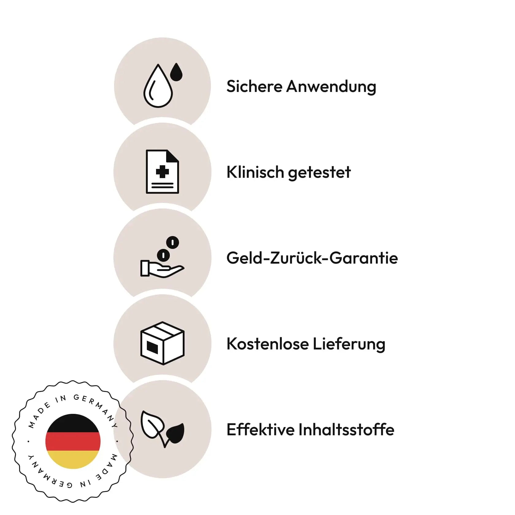 Das Haarserum ist sicher und einfach in der Anwendung. Es wurde dermatologisch getestet und enthält keine aggressiven oder schädlichen Inhaltsstoffe.